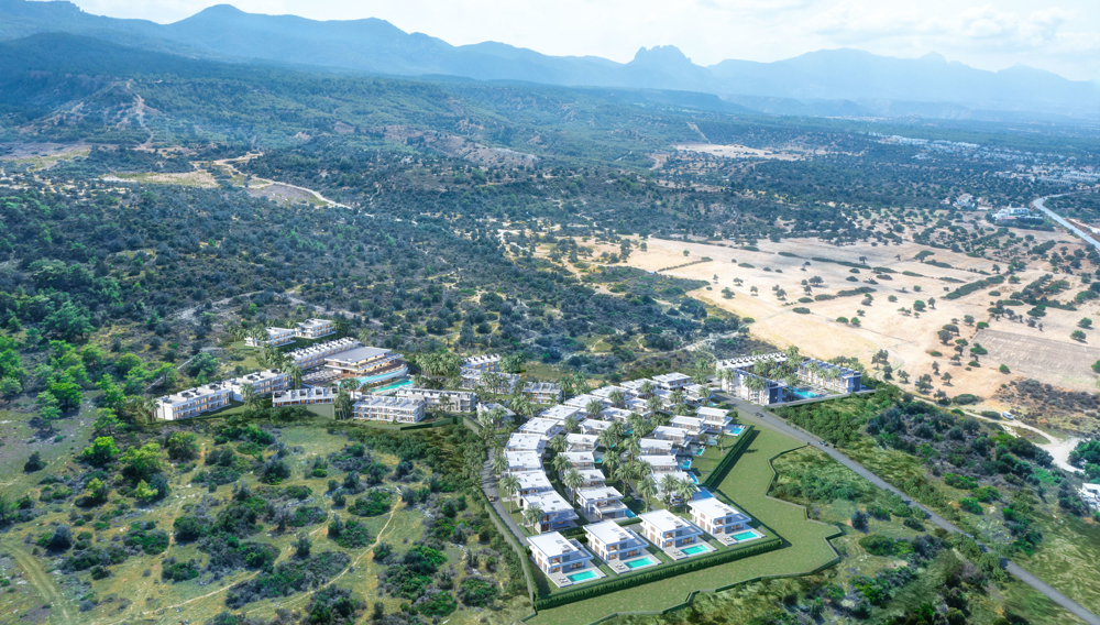 Die Immobilie in der Resort-Anlage ist ca. 10 Minuten vom Bergdorf Esentepe und 15 Minuten von der verzaubernden Hafenstadt Kyrenia entfernt.
