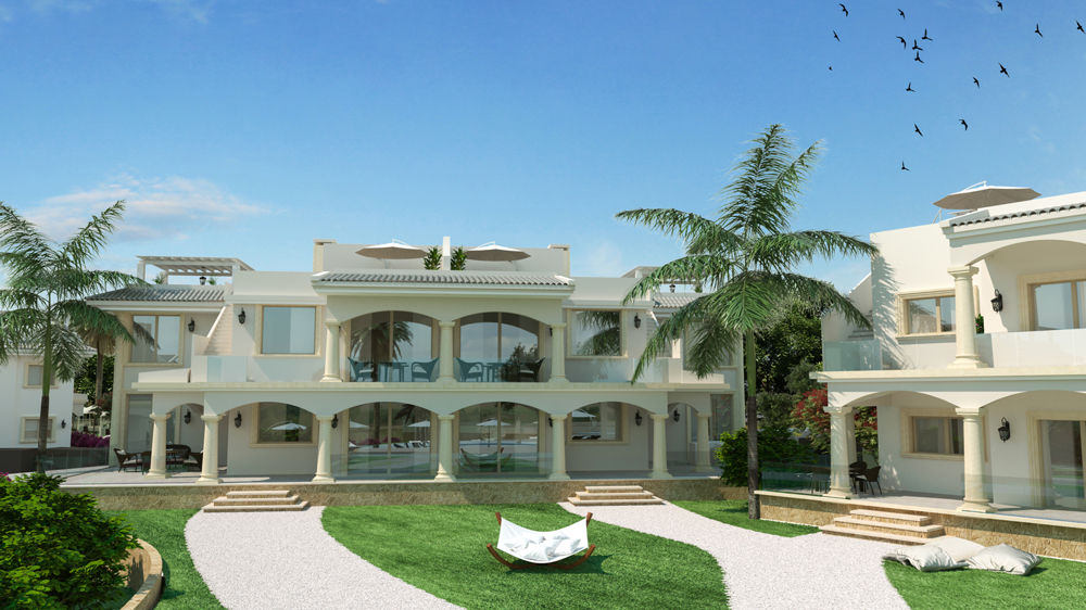 Die Wohnanlage besteht aus vier Blöcken mit jeweils sechs Wohnungen und sechs Blöcken direkt am Meer mit jeweils vier Wohnungen, ausgestattet mit Infinity-Pools für die Gartenwohnungen und Whirlpools für die Wohnungen im ersten Stock.