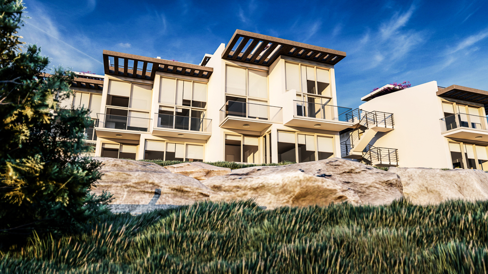 Die Wohnanlage besteht aus fünf Wohnblöcken mit einer außergewöhnlichen Auswahl an Ein-, Zwei- und Drei-Zimmer-Apartments und Penthousewohnungen. Alle bieten einen Panoramablick auf das Meer und die Berge.