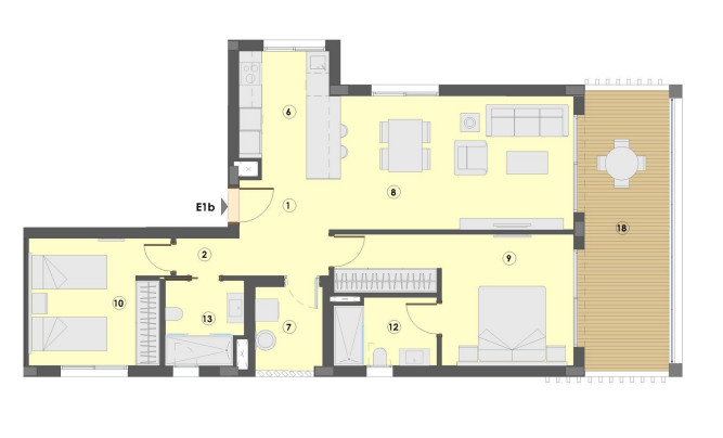 Die Neubau Wohnung in Colonia de Sant Jordi befindet sich nur 300 m vom Strand Es Trenc entfernt. Die Wohnung mit 2 Schlafzimmern und 2 Bädern ist mit qualitativ hochwertigen Materialien ausgestattet. Der helle Wohnbereich mit offener Küche sorgt für eine elegante moderne Wohnatmosphäre. Durch Klimaanlage, elektrische Fußbodenheizung in den Badezimmern und motorisierten Jalousien ist die Wohnung ganzjährig komfortabel nutzbar. Zu den Wohnungen der geschlossenen Anlage gehören jeweils PKW Parkplätze und Abstellräume. Insgesamt eine moderne Neubau Anlage im schönen Südosten von Mallorca mit Fertigstellung Ende 2026. Reservieren Sie schon jetzt Ihre Wohnung und nehmen Sie Kontakt mit uns auf.