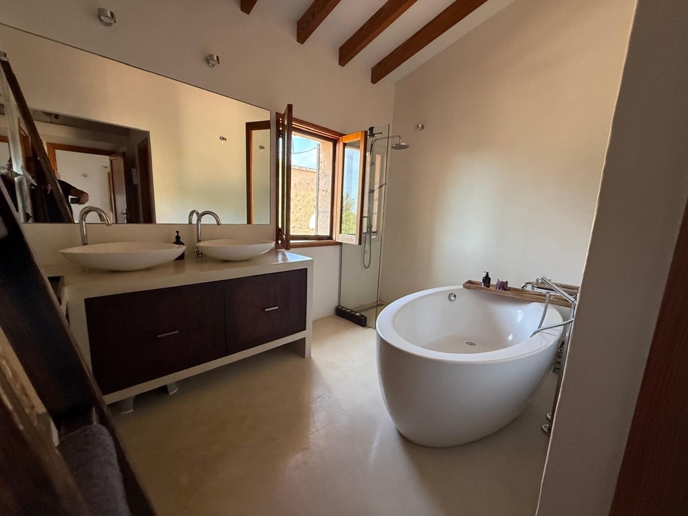 Diese atemberaubende Finca vereint den traditionellen Charme eines mallorquinischen Natursteinhauses mit modernem Wohnkomfort und bietet auf einem großzügigen Grundstück von 1,5 Hektar (15.600 m²) eine unvergleichliche Lebensqualität. Das Anwesen befindet sich in einer idyllischen Lage, nur acht Kilometer vom malerischen Strand Es Trenc entfernt, umgeben von einer natürlichen Landschaft, die Ruhe und Inspiration ausstrahlt, und ist gleichzeitig nur 30 Minuten von Palma entfernt.